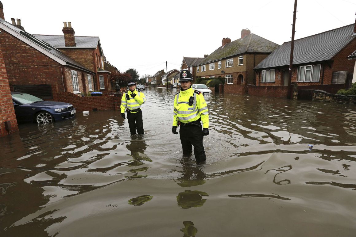 Polícias em Egham, uma das zonas afectadas pela cheia do rio Tamisa Paul Hackett/REUTERS